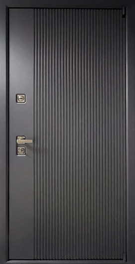Металлическая темно-серая дверь с фрезерованными плитами МДФ КД-1104